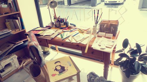 마소영 디자이너의 책상을 그대로 옮겨놓은 듯한!