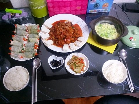 토요일,일요일엔 시가와 친가를 모두 다녀오구, 일요일 저녁만 차려먹었네요 ㅋ
