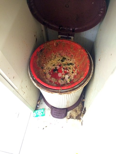 악취가 코를 찌르고 소쿠리엔 묵은 음식물때들이