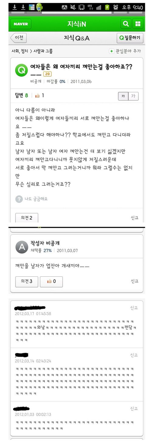 왜 여자끼리 껴안고 다녀요???