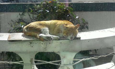 햇볕을 받아서 빨래판이 아마 따뜻해졌었나봄