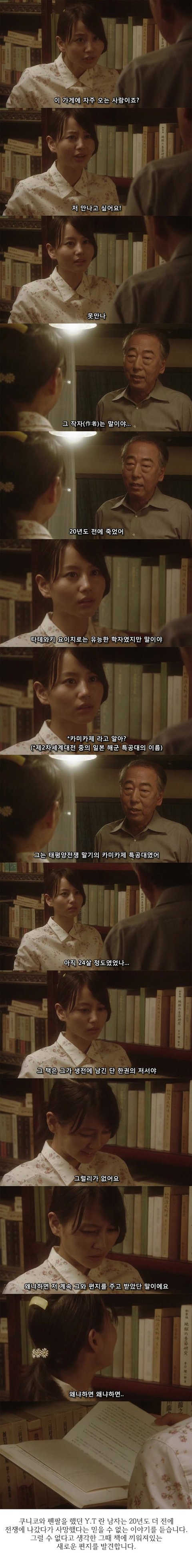 카미카제라고 하면 2차 세계대전 당시의 자살특공대.. 침략전쟁 일으킨 주제에 침략을 당한 피해자인 척 여주를 지키기 위해 출격하겠다는 대사를 집어 넣다니 과연 일본스럽네요. 기묘한 이야기 좋아했었는데.. 실망스러워요. 물론 지금까지 잘 볼 수 있도록 올려주신 글쓴님께는 감사드립니다.