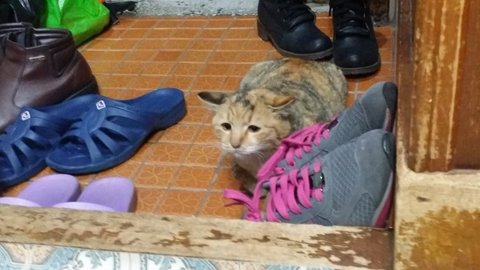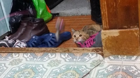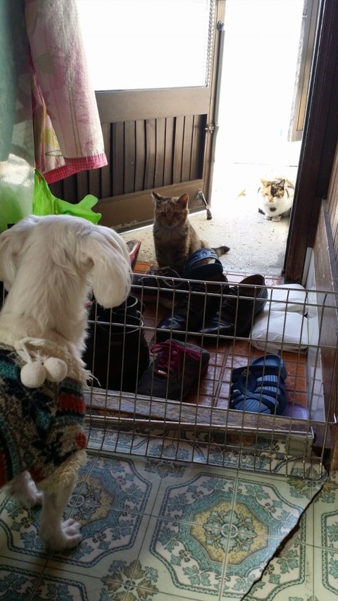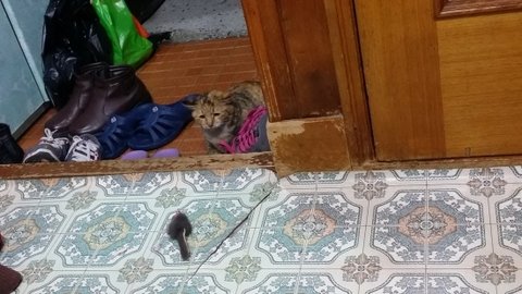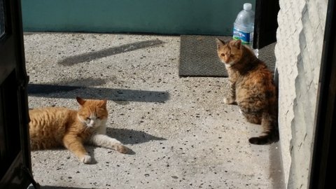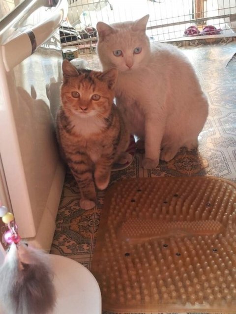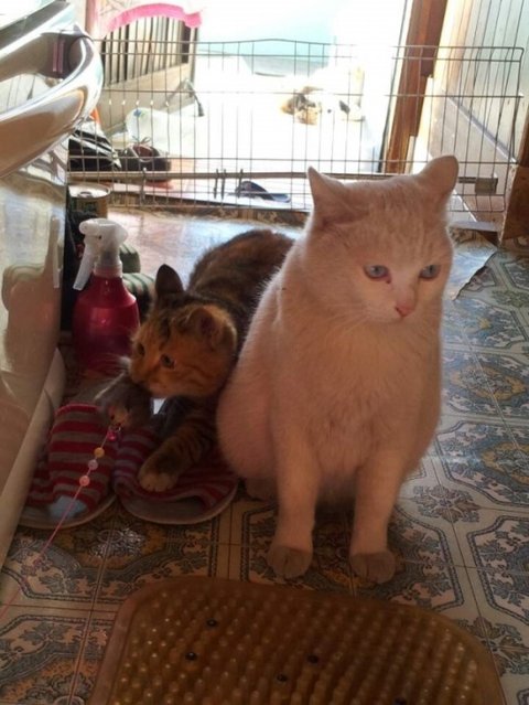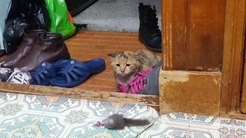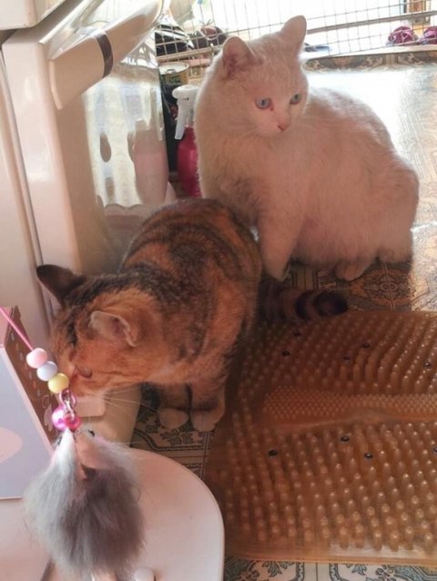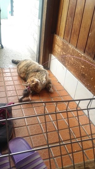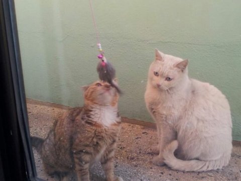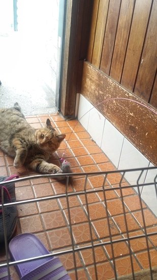 빼앗긴 쥐돌이로 인해 상심하고 있을 모녀냥에게