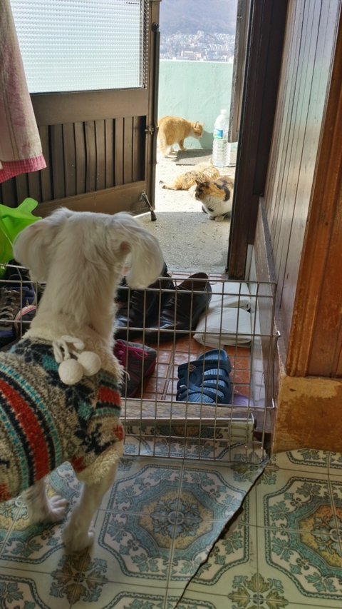냥이들 경계하는 꼼이와