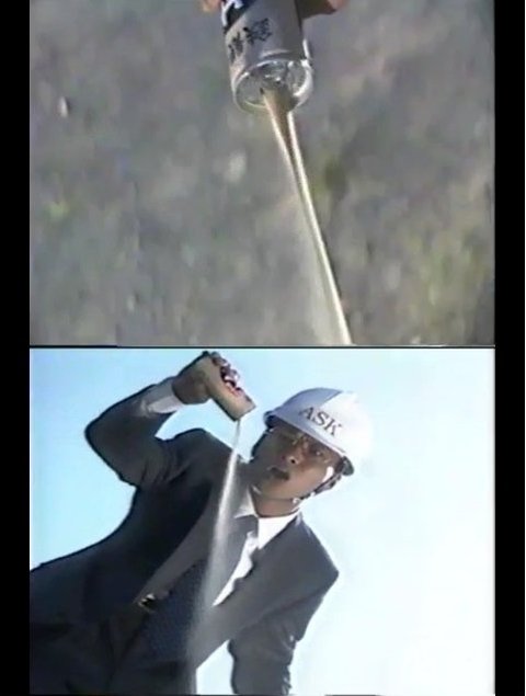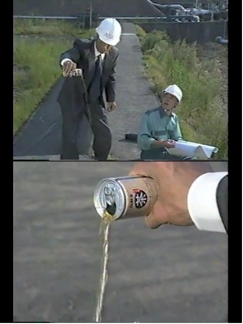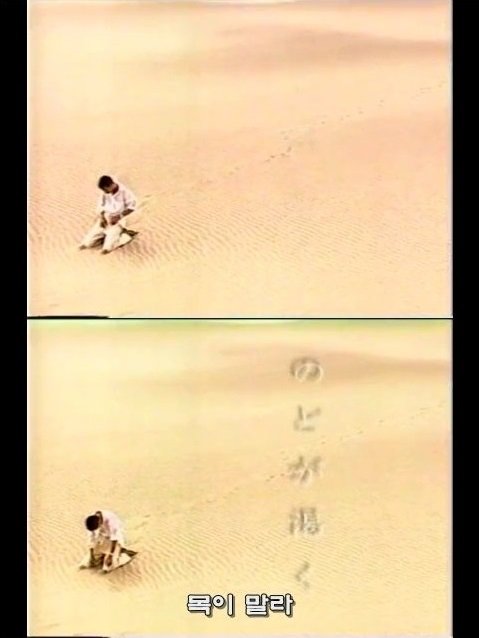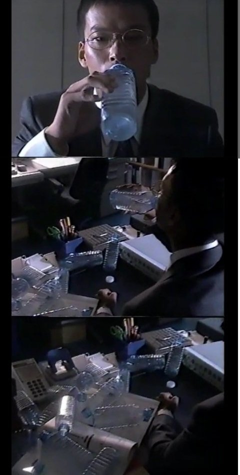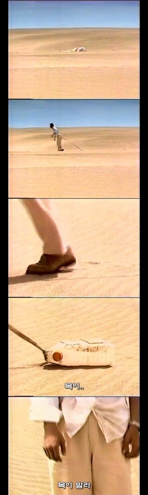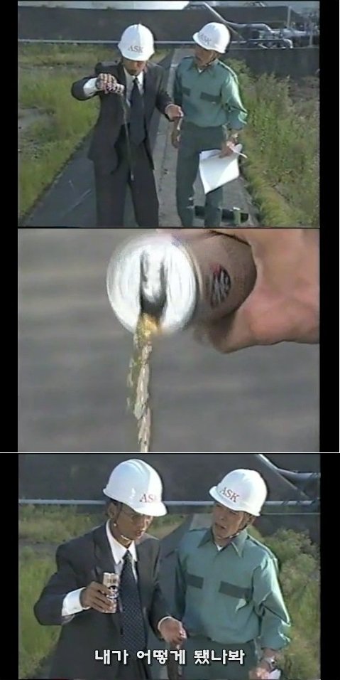 이상함을 느낀 남주가 바닥에 따라 보는데, 캔안에서 나오는것은 음료수가 아닌 모래임.