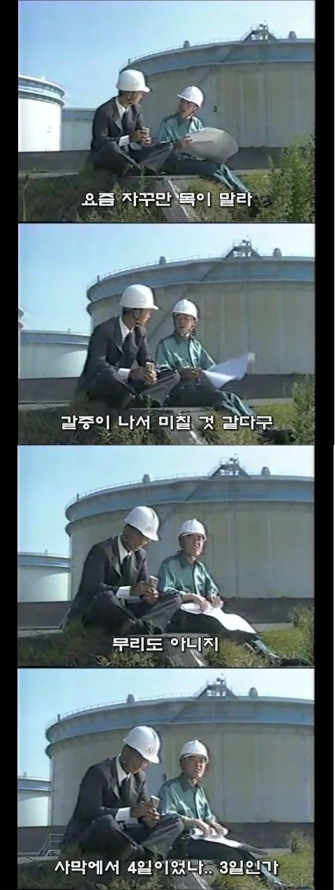 동료에게 상의해 보지만, 사막에서 사흘이나 헤맸으니 그럴수 있다며 대수롭지않게 넘김.