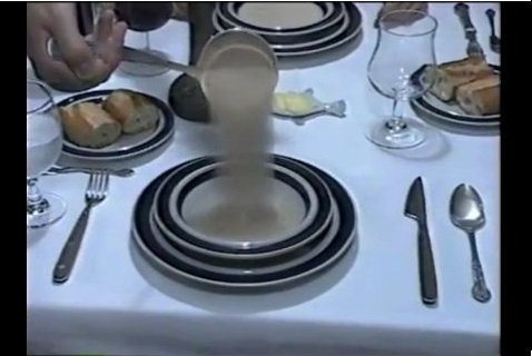 에피타이져로 스프가 나오는데, 국자에서 그릇으로 담겨지는것은 스프가 아닌 모래임.