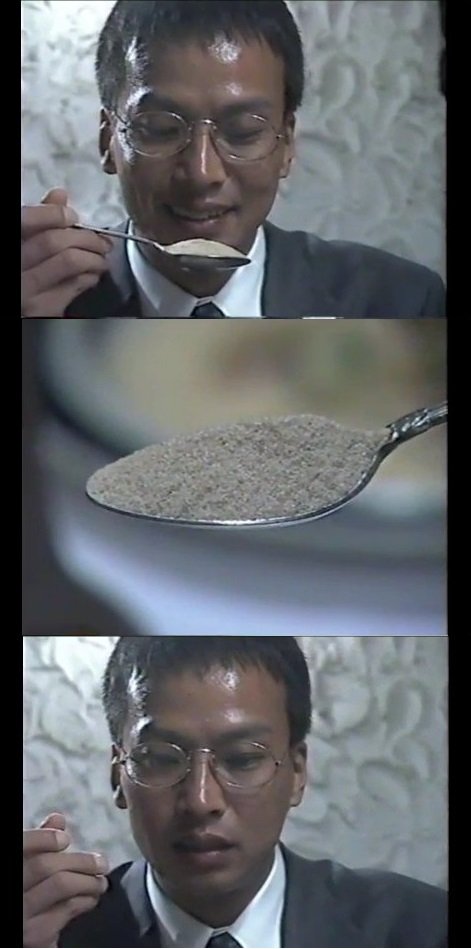 남주가 다행이다 생각하며 한숟갈 뜨는데... 숟갈위엔 음식대신 모래가 있음.