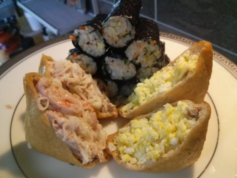 황금같은 주말아침잠 포기하고 만든 꼬마김밥과 유부초밥이에요 ㅎㅎ
