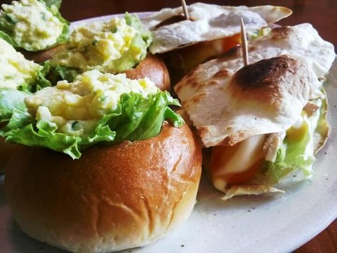 모닝빵을 도려서 감사샐러드를 넣은 간단한 샌드위치에요