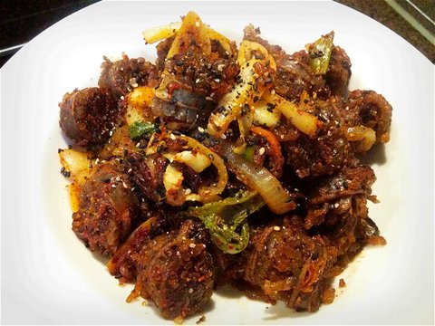 아침에 소금만 찍어서 담백하게 먹을라고 아껴둿던 순대 꺼내서.. 순대야채볶음을 ㅜㅜㅜ