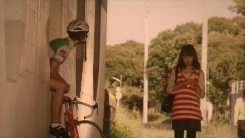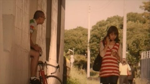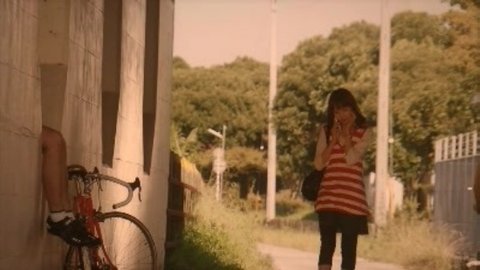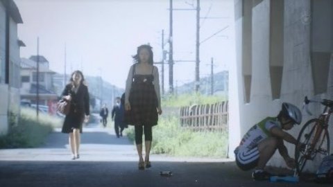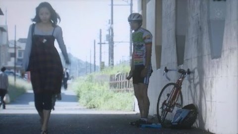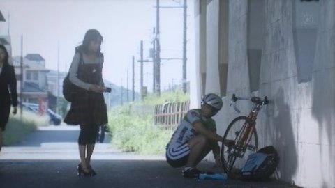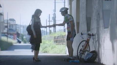 여자는 자전거를 고치고 있던 사람한테 다시 되돌려줍니다