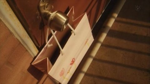 문앞에 어제랑 그저께처럼 종이백이 걸려있는지