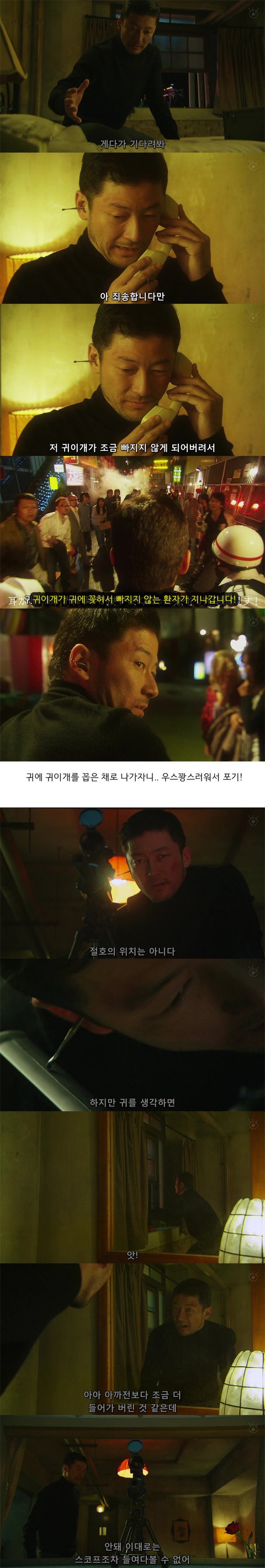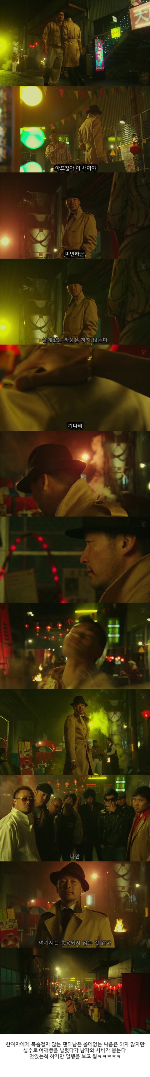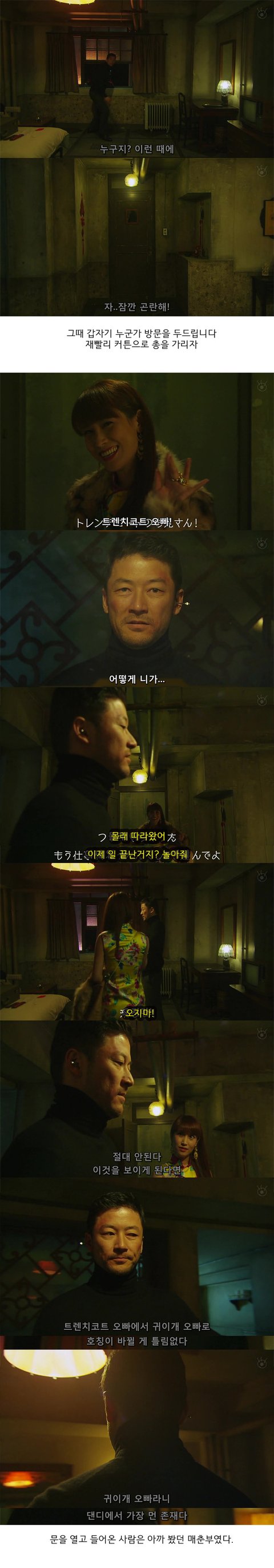주인공이 중국어로 대화하는 부분에서 일본어자막과 한글자막이 겹쳐지면서