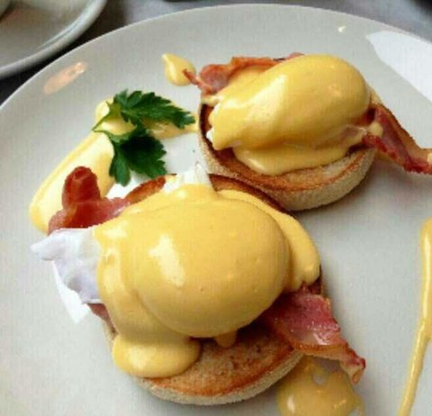 포치드에그를 뒤덮은 저 홀란데이즈소스...계란이 마치 "나를 얼른 갈라줘..".라고 유혹하는듯?