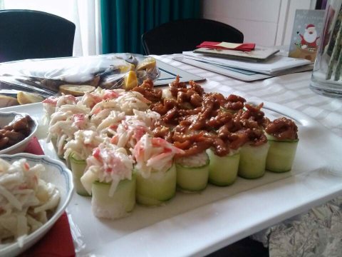 두가지의 오이롤초밥. 테리야키치킨과 와사비마요크래미!!
