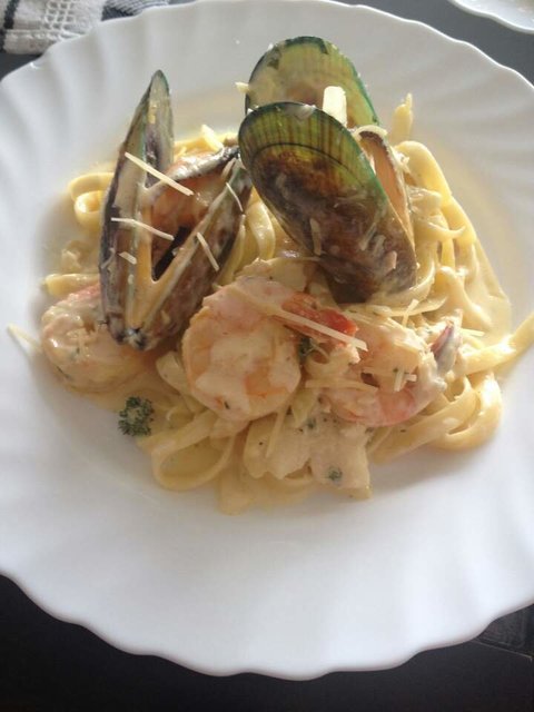 씨푸드 크림 파스타 만들어봤어요. 올리브유에 마늘쫑쫑쫑 썰어서 볶다가 해물넣고 지글지글