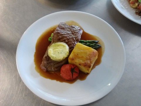 평범한 스카치와 갈릭허브버터... 포테이토슬라이스 w 그릴드 토마토 엔 베지스!