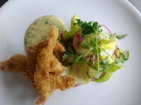 솔트엔페퍼 크럼드치킨과 버르테소스!!! 이름은 웅장할수도 있지만 그냥 빵가루 뭍힌 치킨과 허브많이들어간 마요네즈? 비슷한 소스에요...네..양식은 허세의메카였어요 여러분...