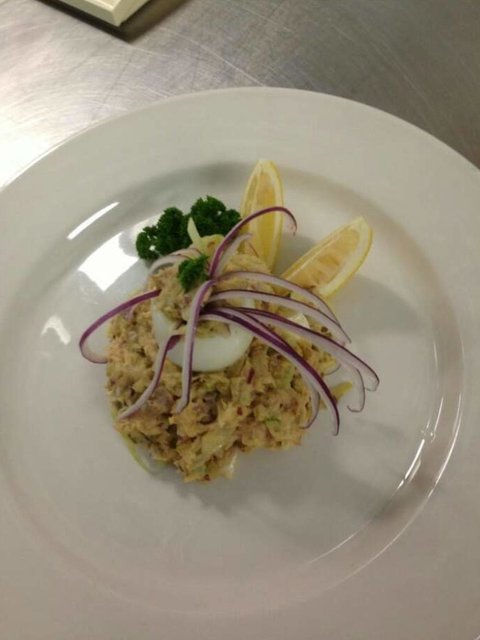 이놈은 튜나에그샐러드에요~참치계란샐러드? 쉐프가 데코레이션은 알아서 하라해서 레드어니언 쥴리엔띄어서 머리카락 심어줬네요. 무럭무럭자라줘 양파야 크흑흑...
