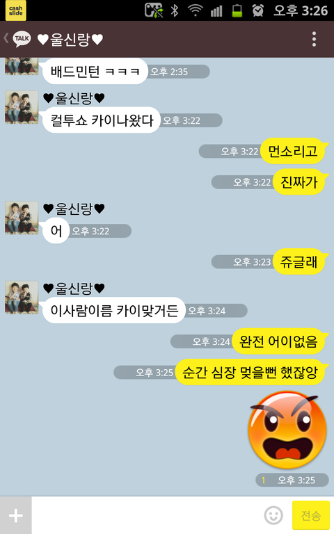 했나싶어 급히 라디오를 켜니 신랑이 말한 카이는 내가좋아하는 카이가 아닌 팝페라가수 카이였던거야