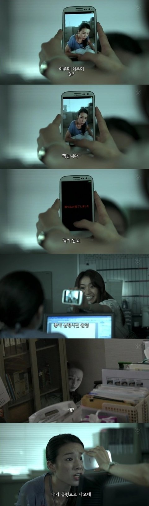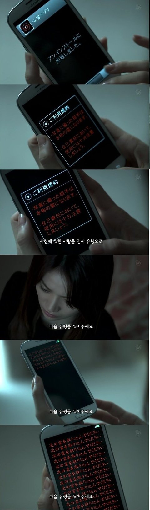 여주는 그 심령사진을 찍는 어플을 지우려고 하지만, 지워지기는 커녕 다음유령을 찍어달란 문구만 화면을 가득히 채움. 그러더니...