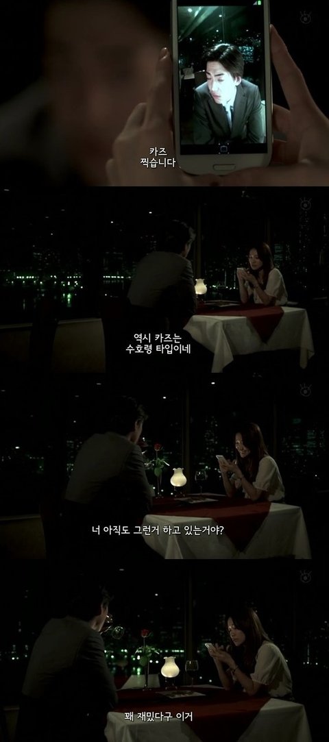 하지만 굴하지않고, 이젠 남친의 사진까지 찍음. 저런 고급레스토랑에서까지...ㅋㅋㅋ