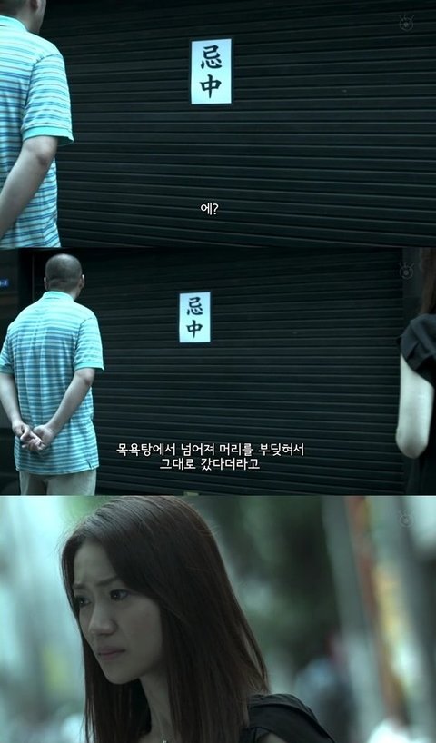 설마하는 생각에 달려간 분식집은 굳게 닫혀있고 기중(상중의 다른표현)이라는 문구가 붙어있음.