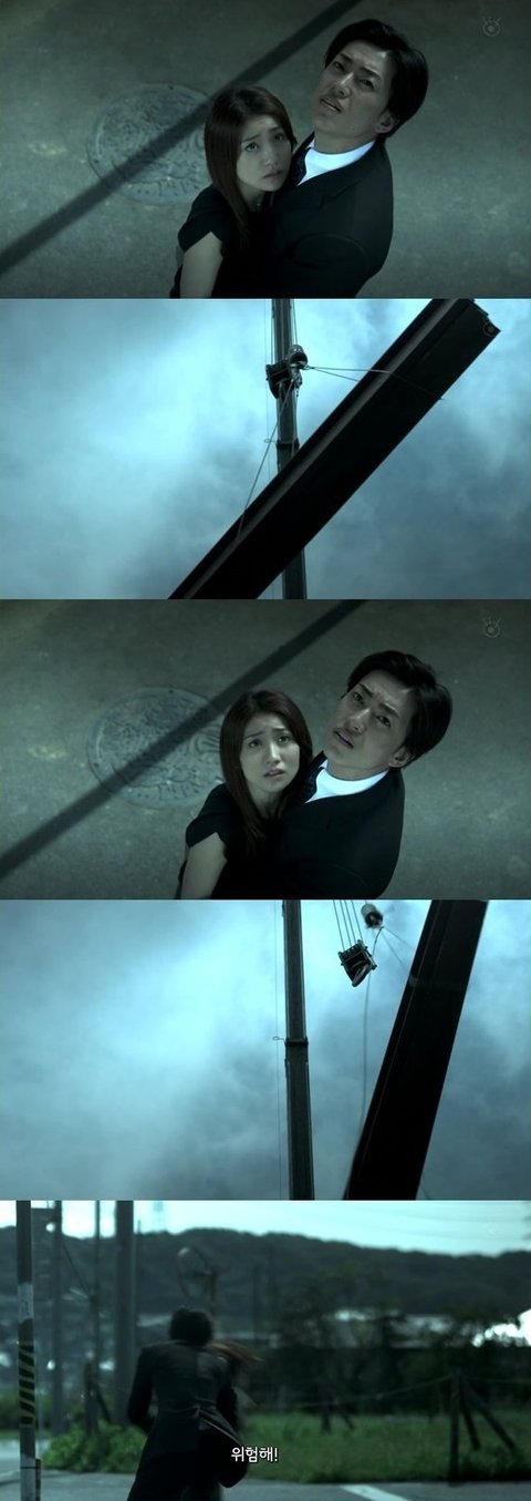 빔(건설자제)을 메어둔 크레인의 줄이 끈어지며 빔이 여주커플을 덥치는데...