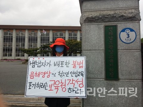 "범법자가 배포한 불법 음해영상으로 청소년 인성교육 포기하려는 교육청은 각성하라"