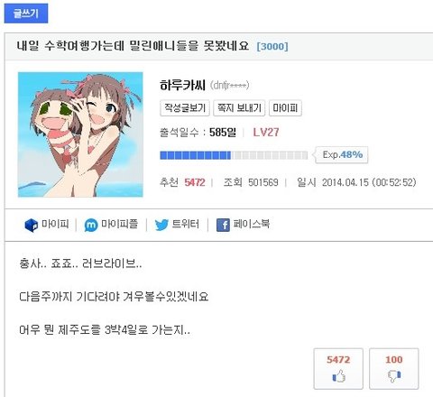 하루에도 많은 조회수를 내고 있는 게시물이였습니다