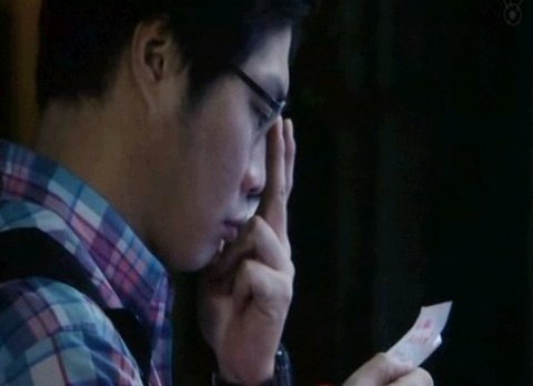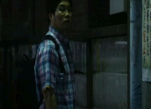 남자는 겁을먹고 놀라 뒤를 쳐다봅니다