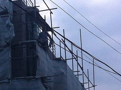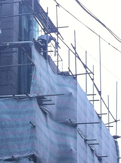저렇게 올라가서 위험하게 작업하고 있습니다.