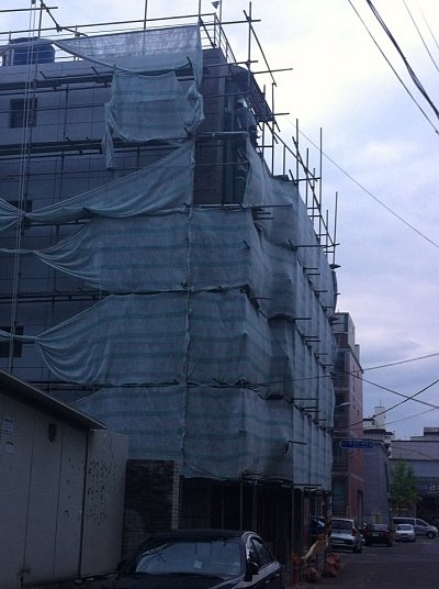현재공사중에 있는데 공사인부들이 공사를 위해 설치해놓은