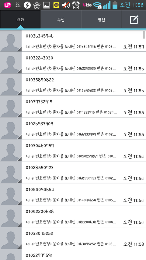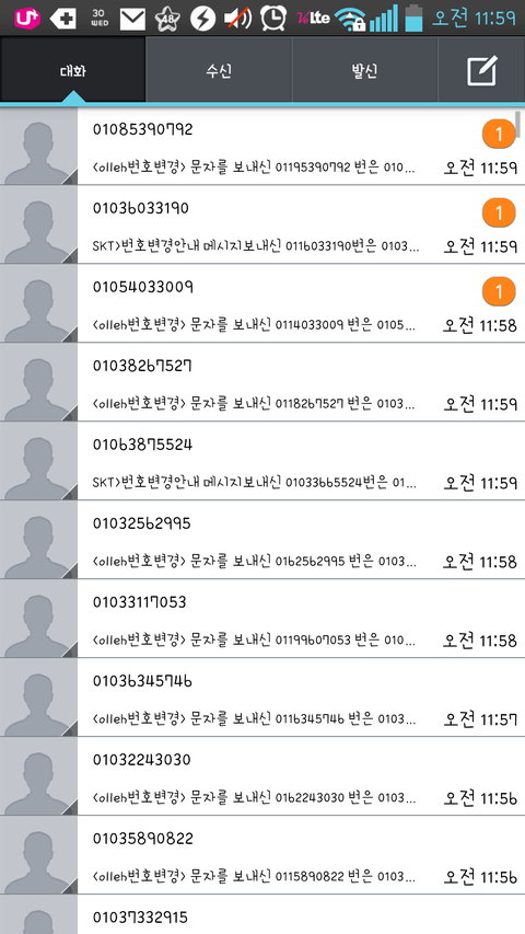 ㅠㅠㅠㅠ왠지는 모르겟는데 계속 저한테 번호변경문자가 skt olleh 에서와요...그래서 봣더니 제가원래알던번호도 아니고 바낀번호도 처음보는번호...;;