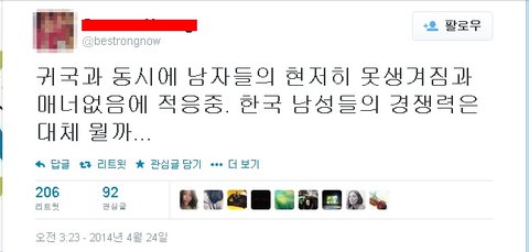 ㅋㅋㅋㅋㅋ그건여자도마찬가진데?; 유학하고 들어온 남자도 니 외계인처럼보이는건 마찬가지야 이여자야..