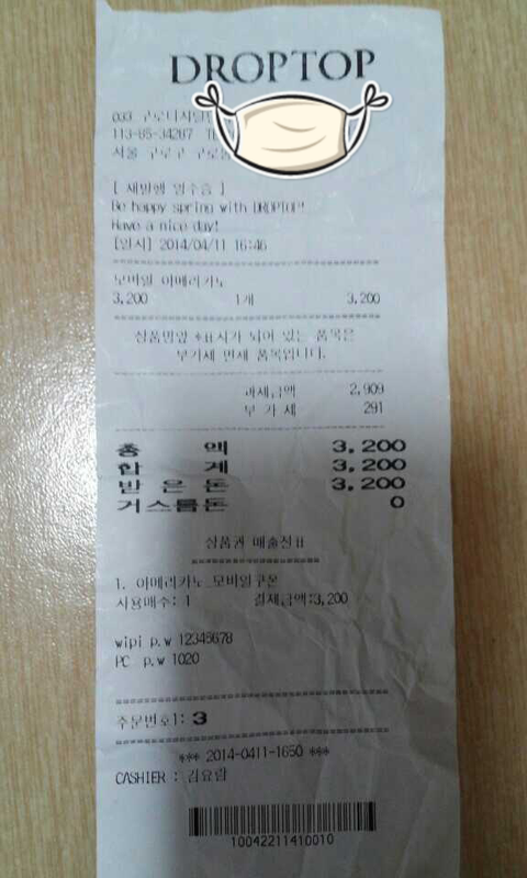 영수증은 3200원짜리 아메리카노로 찍혀있다~