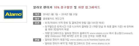2.미국 하와이 지역에서 알라모 렌터카도 10% 할인! 청구 할인 및 차량 업그레이드?! Wow!