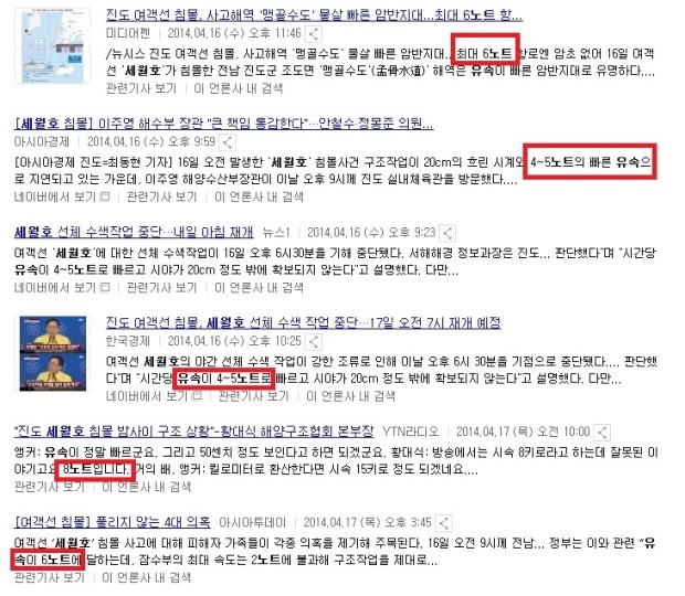 세월호 최대 6노트
