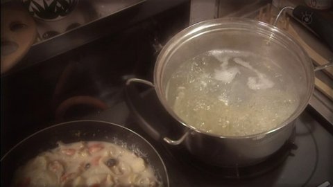 한쪽 냄비에서는 물이 끓고 있고