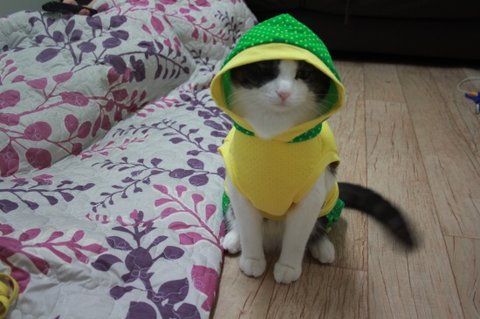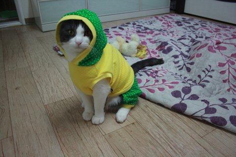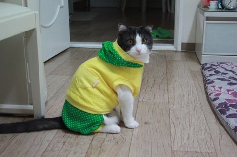 따뜻한 봄을 맞으며 유청이에게 묘생 처음으로 새옷을 선물했어요.