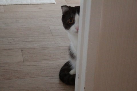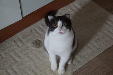 청소하려고 청소기를 꺼내는 순간 유청이가 긴장하고 있습니다.