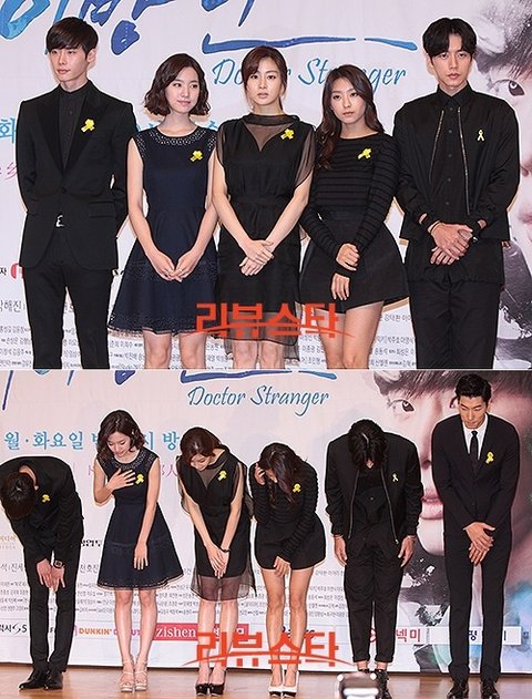 출연배우 모두 세월호 참사를 추모하는 의미로 노란 리본을 달았는데