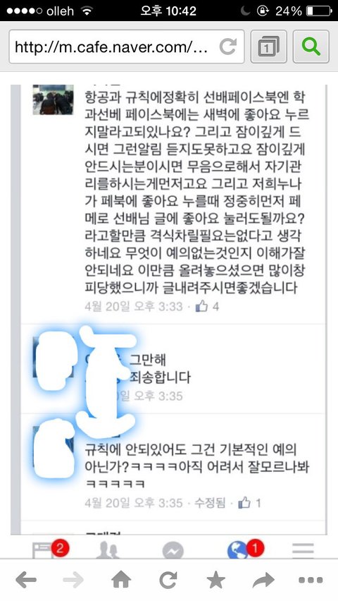 1. 후배가 새벽에 선배 페북 좋아요 눌러서 선배 빡침