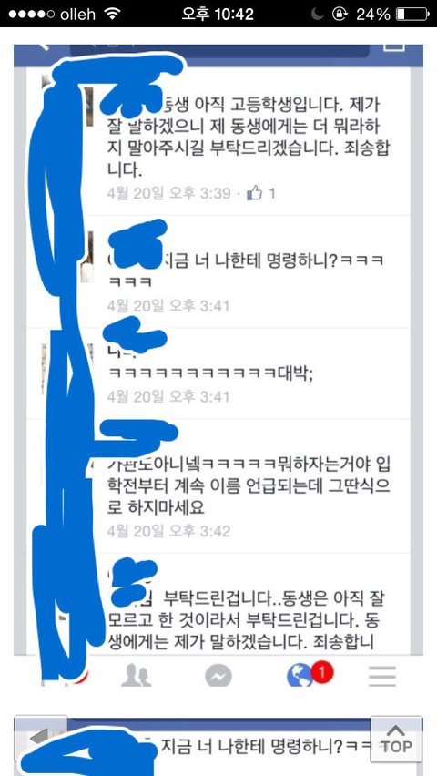 2. 공개적으로 후배가 까이자 후배의 동생이 캡쳐하며 항의함