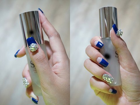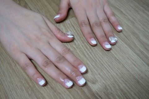 시원한색깔의 파란색 프렌치에 스와로브스키큐빅으로 뽀인트를 줬어여~