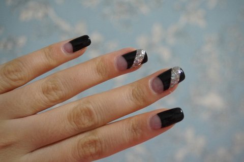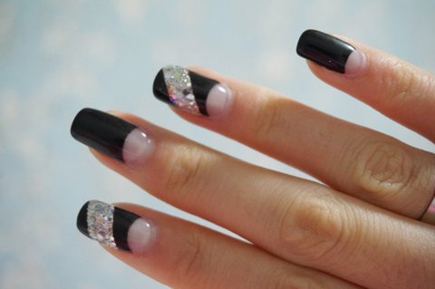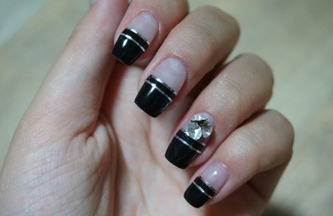 라인테이프로 선잡고 검정색 딥프렌치에 빤짝이를 채웠보았어욘
