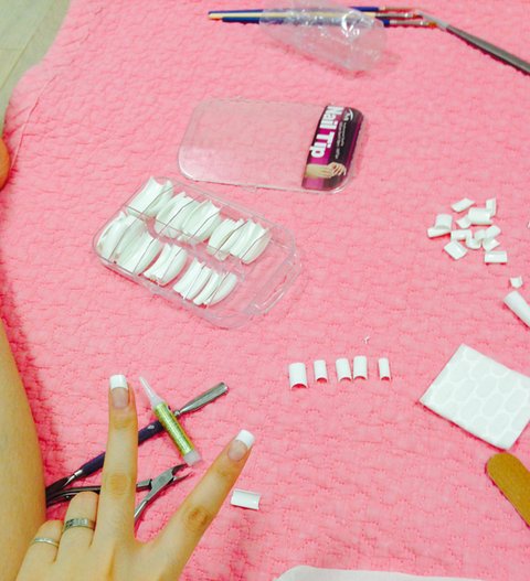 화이트 프렌치에 분홍색.. 그 비닐같은... 저걸 뭐라고 하나요..? 음..