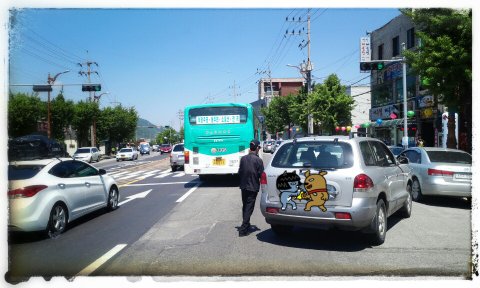 들어왔습니다. 뒤에서 크락션을울리면서 옆에서