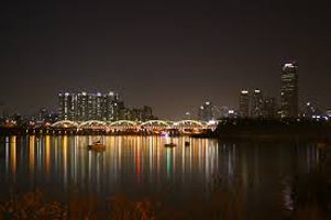 남자는 여자와 한강 고수부지 바로 옆에 있는